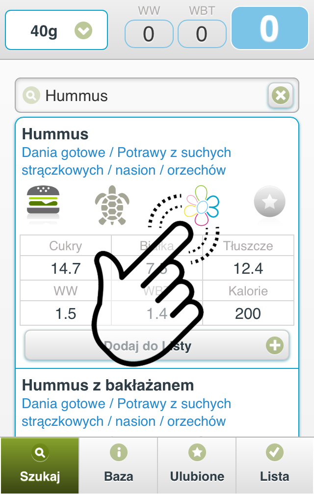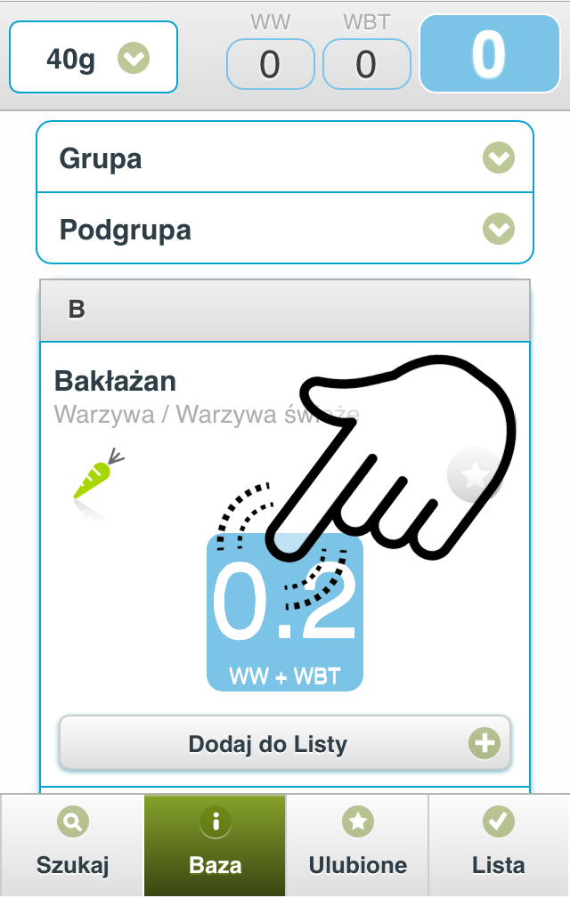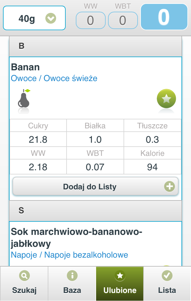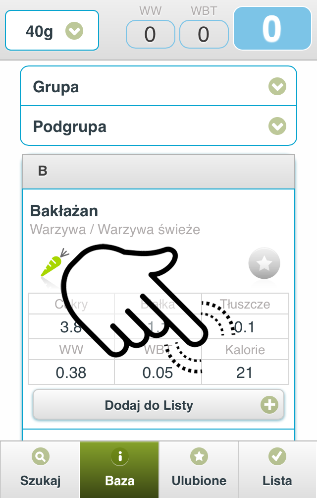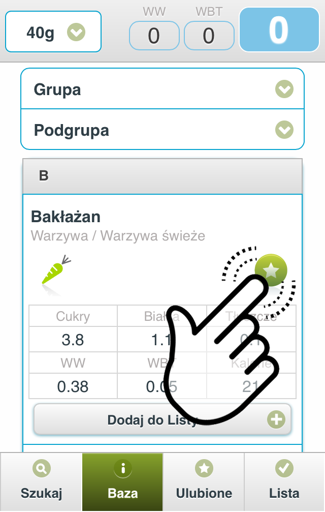 Dodaj do Listy, niezależnie od tego czy jesteś w zakładce Szukaj, Baza, czy Ulubione.