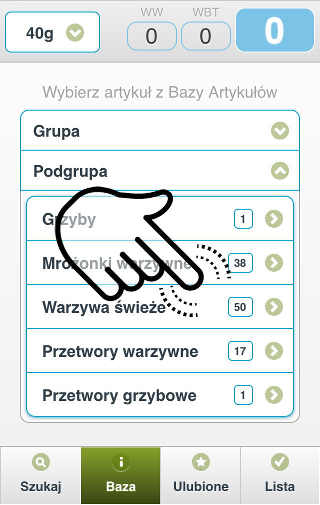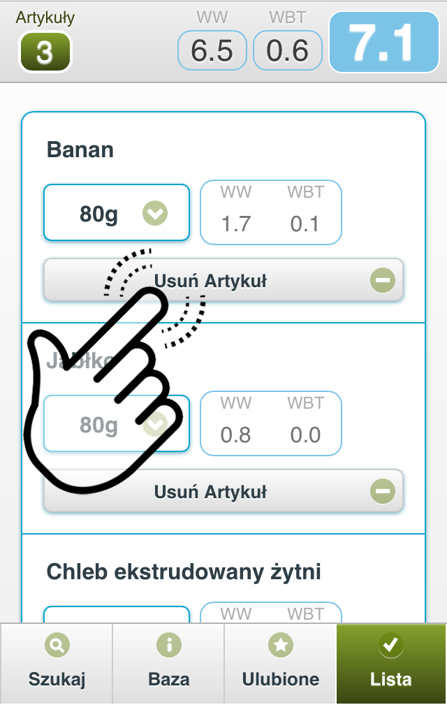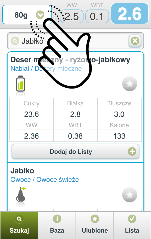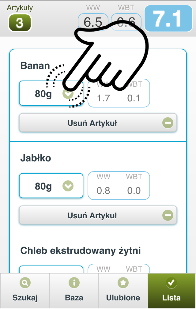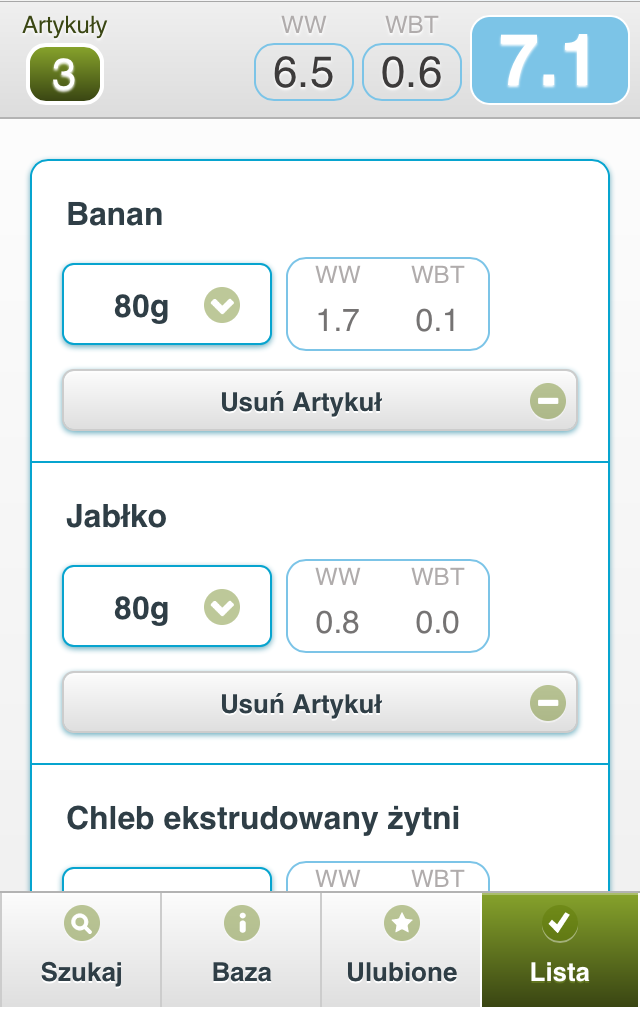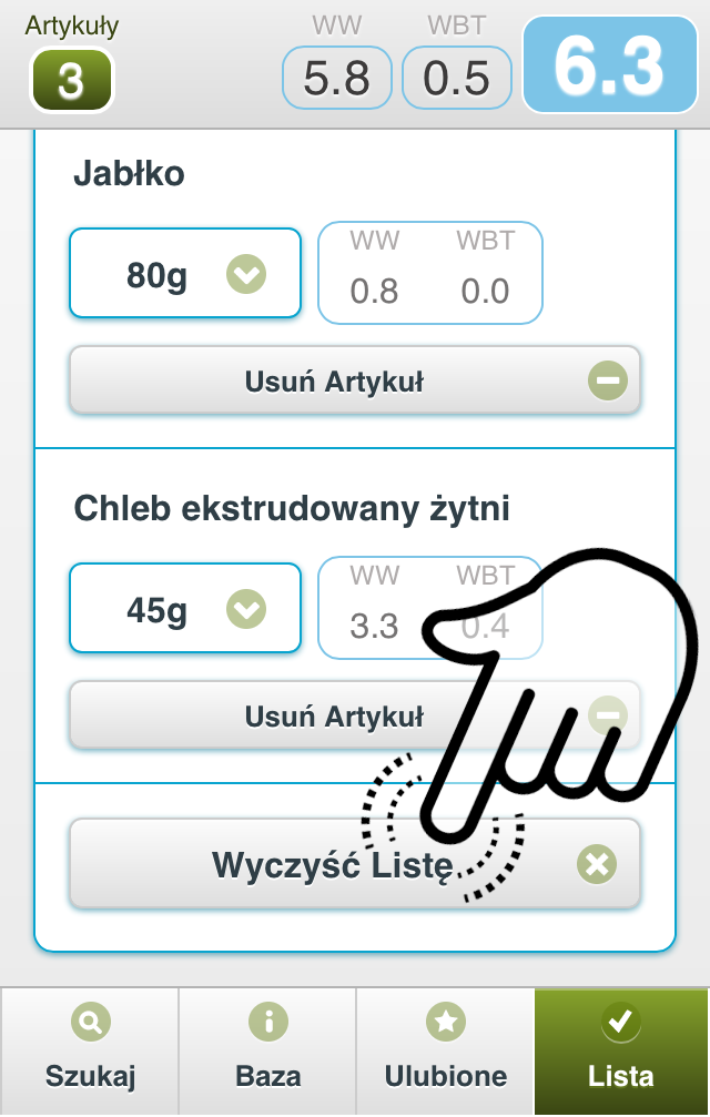 Lista pozwala przeliczyć na wymienniki cały Twój posiłek a nie tylko pojedynczy